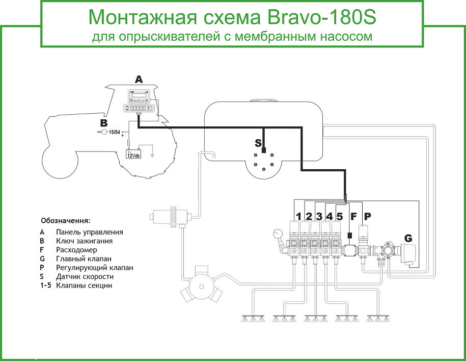 5-ти секционный компьютер "Bravo-180S" (Италия) предназначен для установки на садовые опрыскиватели любых модификаций и выполнения таких сельскохозяйственных работ, как обработка посевов ядохимикатами, внесение КАС, глиффосатов, минеральных гранулированных или жидких удобрений и пр.
